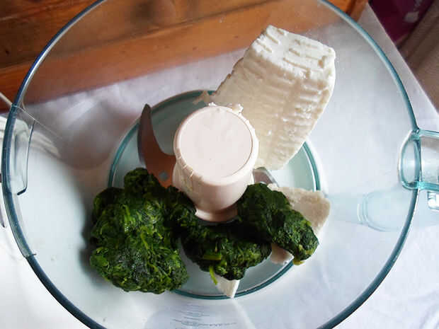 Poner la espinaca con la ricota en un mezclador y mezclar juntos.