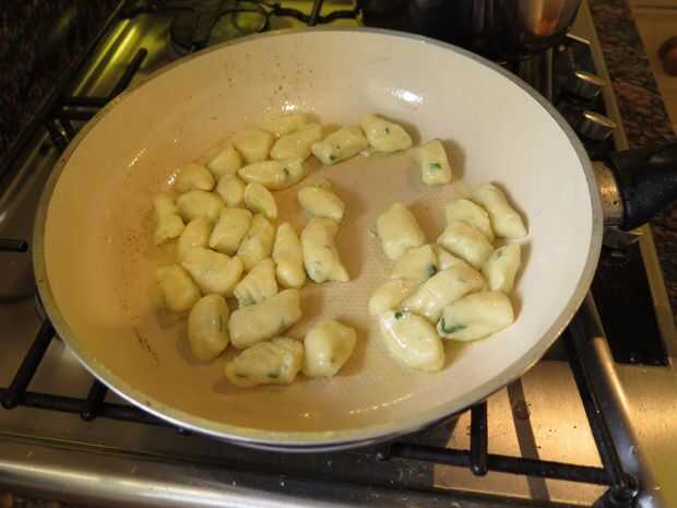 Cuadro 4. Una vez que los ñoquis es cocido y drenado los saltear en una sartén caliente por un par de minutos obtener una textura encantadora. Estos dos últimos pasos son totalmente opcionales.