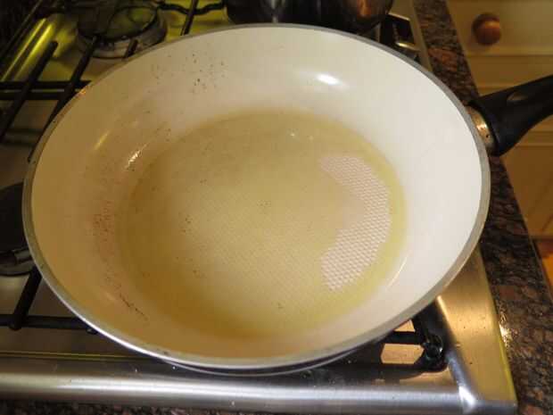 Cuadro 3. Mientras que los ñoquis se cocción, preparar la segunda bandeja, esta vez uno en a fuego alto y añadir aceite. Verlo para asegurarse de que no quemar el aceite.