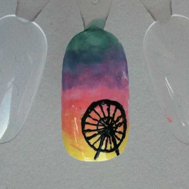 8. alrededor del círculo exterior, pintura, puntos horizontales. Los de los lados pueden ir sobre el círculo externo, es decir, mostrando en ambos lados de la línea.