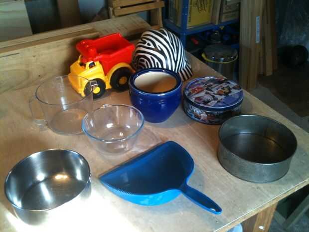 He intentado elegir cubos de tamaños relativamente similares y alrededor 1-2 litros de capacidad, pero también diferente en tipo, color y material. Tenía ya algunos de los contenedores y compró el resto en las tiendas de segunda mano.