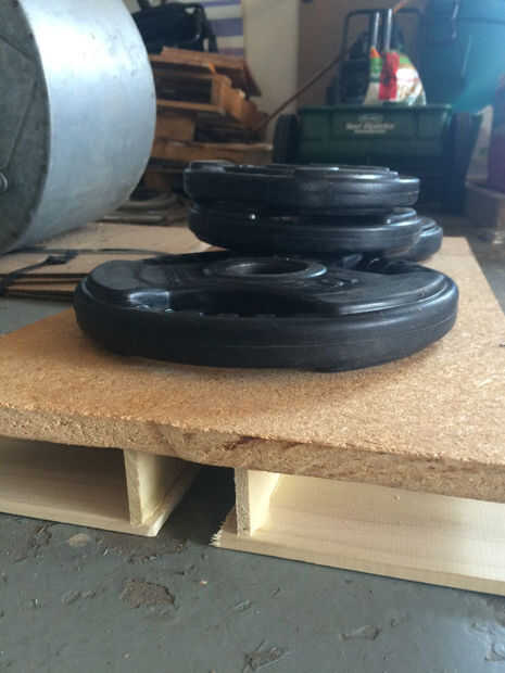 4 - encontrar una manera Fije las piezas juntos o los ponen y sumar peso a ellos para ayudar a bond la madera. Déjelos secar por al menos 2 horas antes de trabajar en ellos y en menos de 24 horas antes de usar realmente la noria en el agua.