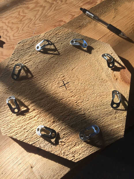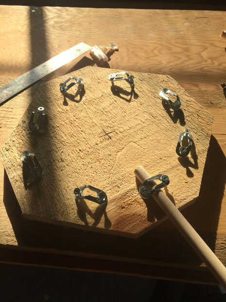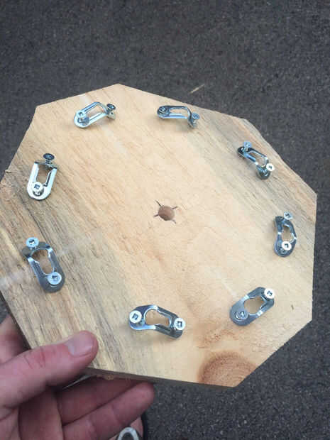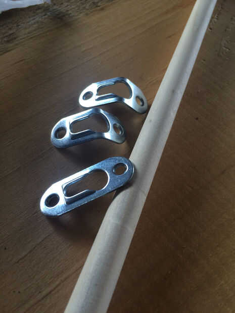 7 - ligeramente doble las 8 escuadras metálicas pequeñas sobre un pasador para darles una ligera concavidad.