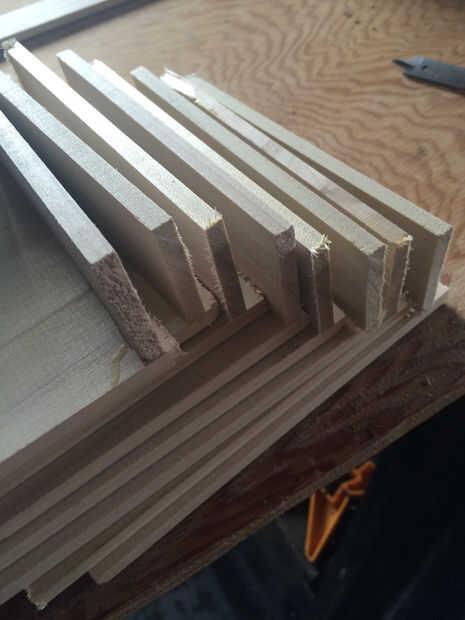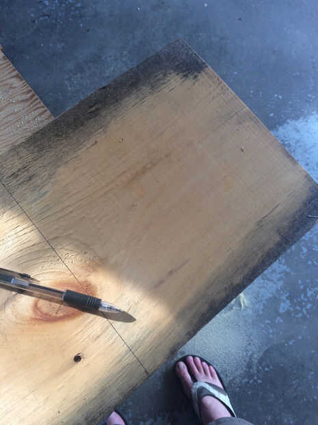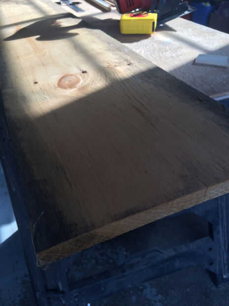 2-trocear la Junta 1/2 "x 3' 8 5" de largo para ir a lo largo de la parte inferior de la pieza más grande.