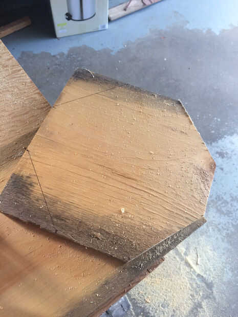 8-cortar algunos de madera hasta para formar un cuadrado de 10 "x 10" *** esta pieza formará parte principal o central y debe ser en arrendamiento 3/4" de espesor *** ahora corte las esquinas de la 10" x 10" Plaza tan uniformemente como sea posible para darle una forma de hexágono