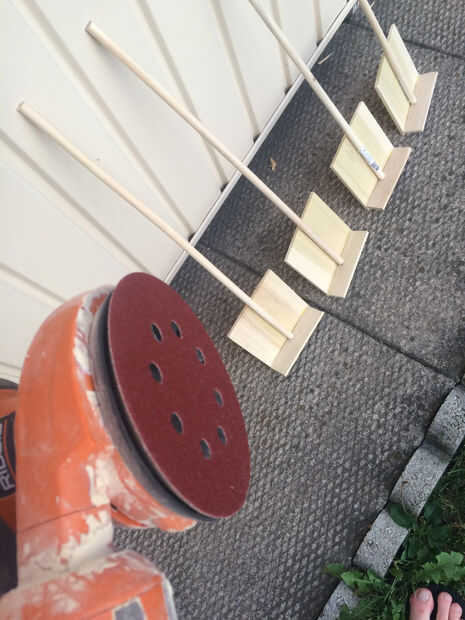 11 - usando una lijadora de Palma Arena por el extremo abierto de los tacos a las paletas para permitir que deslice bajo los estribos más fácil.
