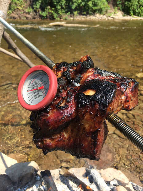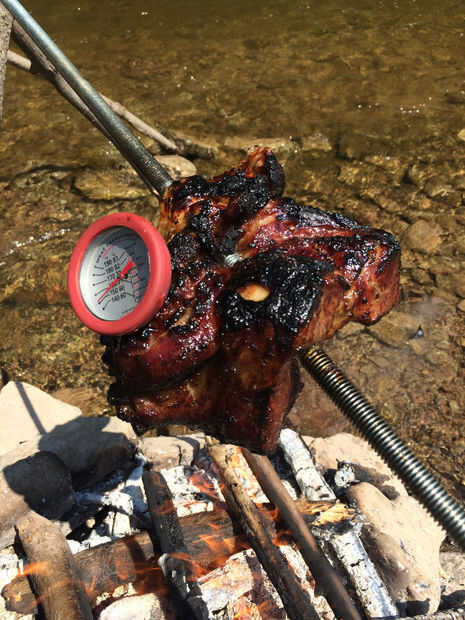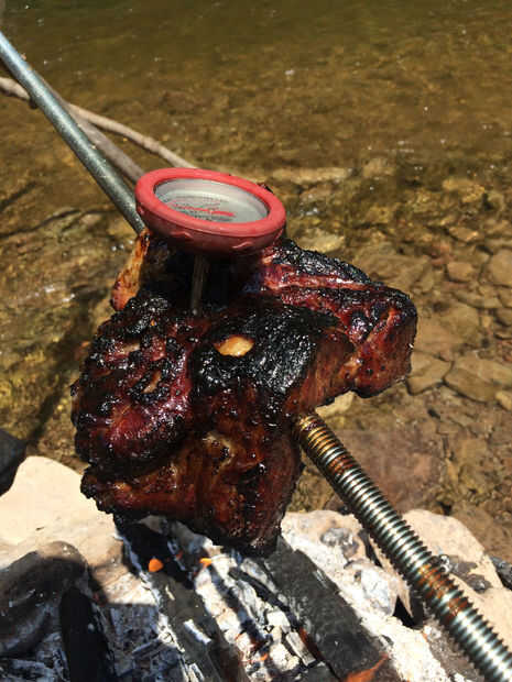 Cocina cambiará dependiendo del viento y otros factores así que poner un termómetro para carnes en después de aproximadamente 2 horas y cocinar hasta una temperatura interna de 180