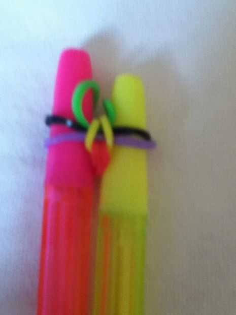 Espina de pescado es una de las mejores bandas de telar!Paso 1: Lo necesitarás: ♡Hook♡Bands♡2 lápices/telarPaso 2: Cómo empezar! ♡Take cualquier banda y hacer un ocho! Asegúrese de introducirlo correctamente en los lápices de las clavijas.Paso 3: Col