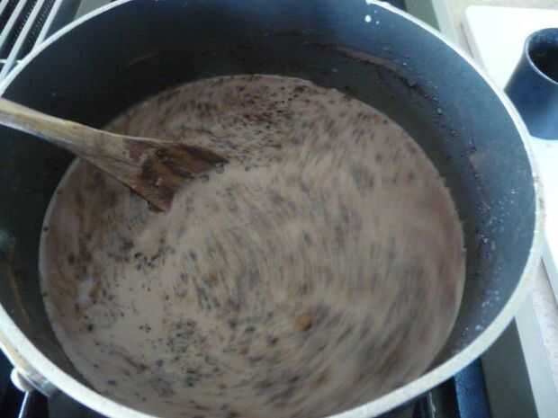 Caliente medio alto, revolviendo constantemente hasta que espesa la mezcla a ebullición suave.