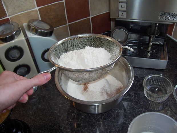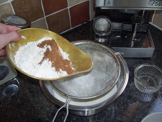 Sobre un bol grande tamizar la harina, sal y las especias de la tierra.