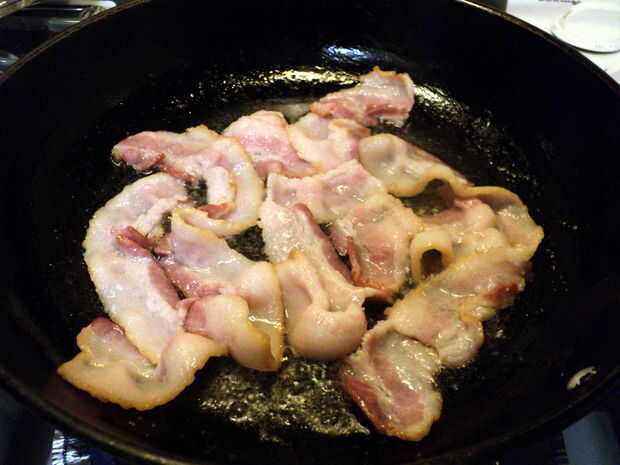Puede escoger los pedazos más grandes de tocino restantes y picar para arriba.