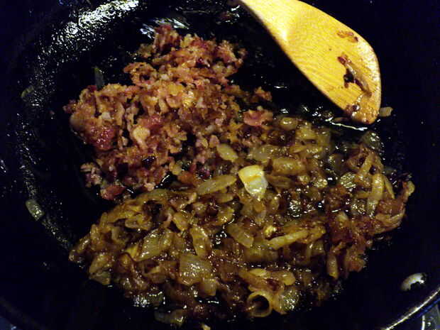 Cuando todo es bonito y dorados, sacar del calor al frío. Terminarás con un menor volumen de suave baconey caramelizado onioney bondad.