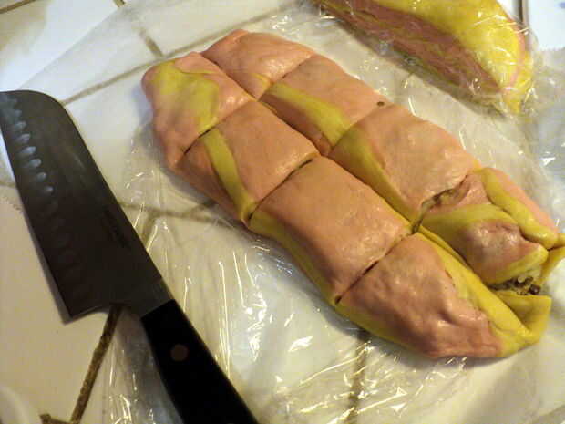 Si usted coloca el relleno cerca de uno de los bordes, rodarla todo como sushi o un burrito para cubrir el relleno con la masa.