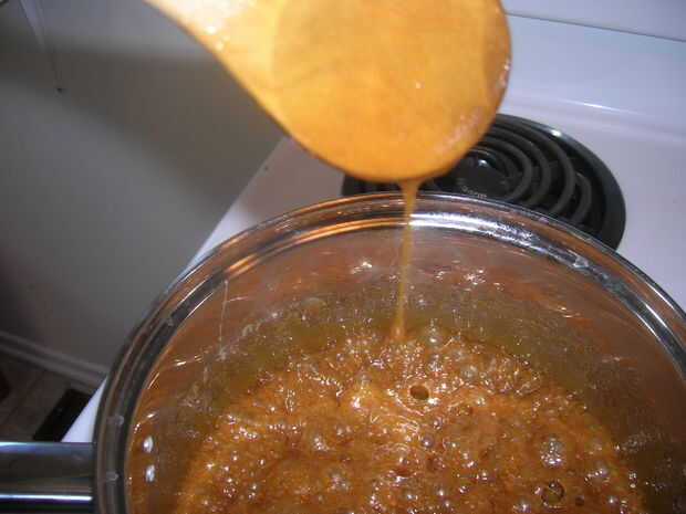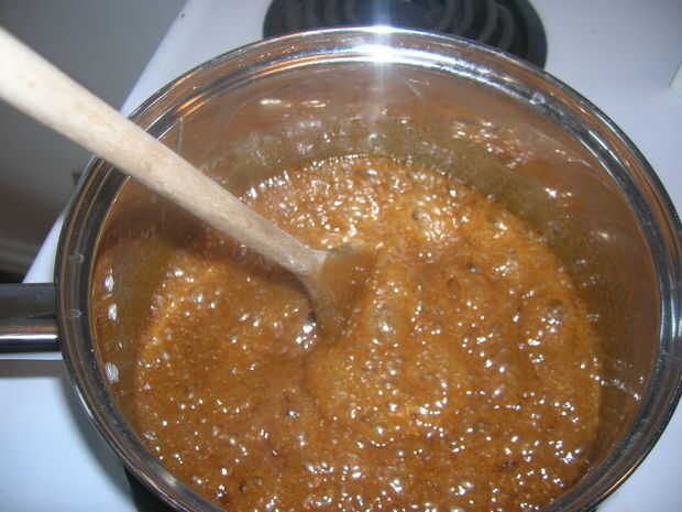 a seguir removiendo lentamente el caramelo hasta que hierva. Dejar hervir durante 2 minutos. Sobre cocinarlo, usted tendrá un tiempo duro que cubre sus palomitas ya que el caramelo se espesa cuando deje cocinar.