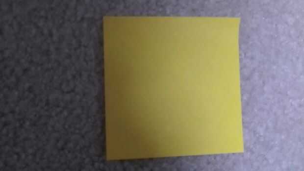 Primero, dobla tu papel por la mitad (lado pegajoso en)