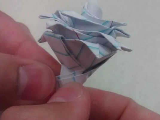 Para hacer un gran aspecto de origami rose, necesita también doblar un cálizUn cáliz se define como - los sépalos de una flor, por lo general formando una espiral que incluye los pétalos y forma una capa protectora alrededor de una flor en capulloEst
