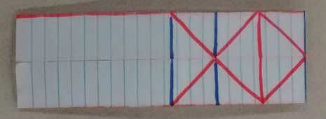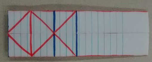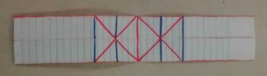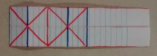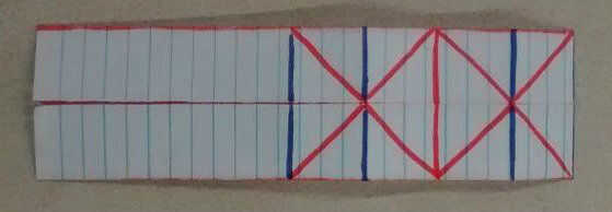 Hacer 4 pliegues de montaña: 2 en el centro de la red x y 2 por encima y por debajo de la roja x