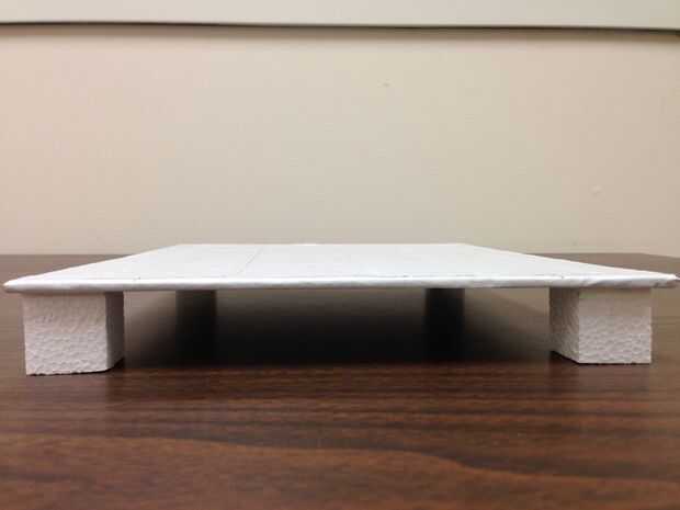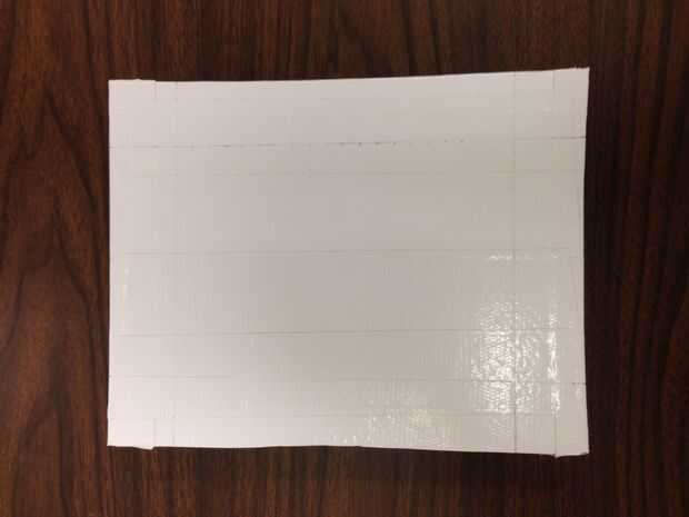 Se puede utilizar cualquier superficie que desee siempre y cuando es fácil de manipular y no te importa Soldándola. Se recomienda usar papel para experimentación rápida, pero también encontramos que una superficie más durable es mejor para la estabilidad de largo plazo de su trabajo. Serrar un trozo de aglomerado de 8.5x11 "y luego lo envolvió en cinta blanca. Al crear su superficie, tendrá que pensar cómo lo usará. Hemos hecho uso de ambos lados y utiliza un diseño de envoltura. Podría hacer una superficie más estacionaria con solamente un lado, pero usted tendrá que modificar nuestro diseño. Nos fija patas de espuma de poliestireno a nuestra superficie para elevarlo y permiten ocultar cosas debajo.