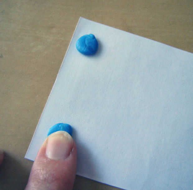 Puntos de pegamento desprendible pueden usarse en lugar de Blu-Tack ya que no dejar ningún residuo detrás, gracias a browsercat por la sugerencia.