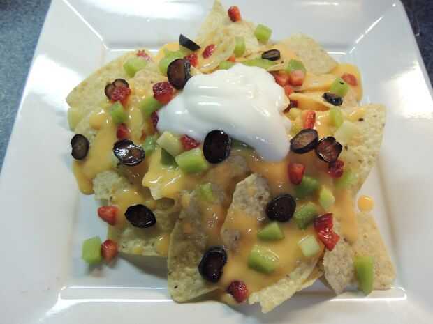 Me encanta Nachos! Chips crujientes que son cubiertas en queso y aderezos, Mmmm! Pero no dejes que estas NOTchos te engañe! Se pueden ven como eso cursi, alta en calorías, terrible para merienda, pero no! Este snack es "nachos" hechos sanos, asfixiada en el yogur bajo en grasa y toneladas de fruta fresca! Estos nachos estoy más que feliz para alimentar a mi familia, y saben tan bien como se ven!