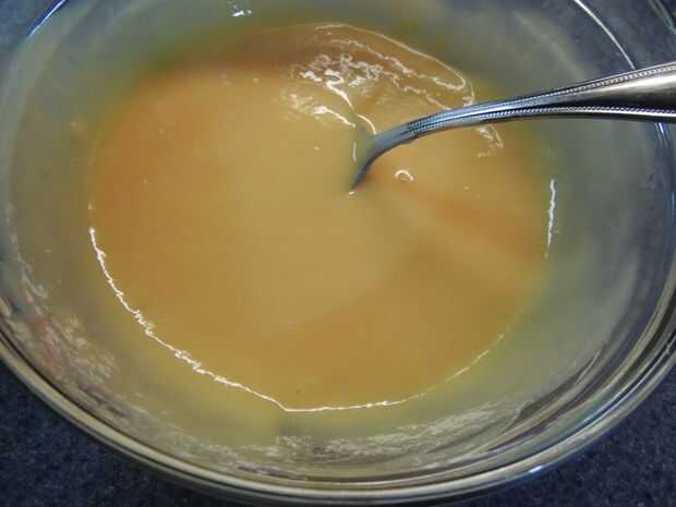 La mezcla ahora se asemeja a una salsa de queso! Sin embargo, el color es un poco apagado. Si te importa que hacen este plato muy engañando, añada una gota de rojo y colorante amarillo y mezcla bien para obtener ese naranja queso procesado se muestra en la última foto.