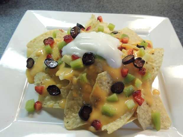 Las virutas de azúcar en un plato y apague en el mango-yogurt "salsa de queso" de la pila. ¿El más el más alegre, verdad? La fruta y yogurt para llorar!!! Espolvorear sobre la fruta "vegi" y cubra con un poco de yogurt, también conocido como "crema agria". ¿Qué queda? ¡Venga, sí! Disfruta tu NOTchos! Libre de culpa! Traer en temporada traje de baño!