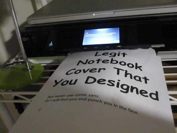 Imprimir una cubierta de la notebook (en 8.5 "x 11") con el tema que usted está tomando, su nombre, su correo electrónico o lo que te apetece. También puede hacerlo a mano o dibujar algo. También imprimir horario de oficina u otra información útil referente a esa clase.