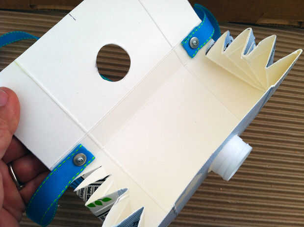 Este ingenioso diseño ofrecido diversión en familia en el año 2007 se trabajo con cartones de leche de medio galón o los cartones de jugo que tienen la boquilla y la tapa. He llegado hasta el punto que voy a comprar una marca particular (gráficos de