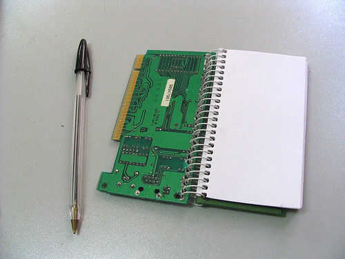 Te hace falta: -tarjetas de red dos (o algo similar, un circuito impreso con un tamaño regular) -papel (la forma más fácil es cortar un viejo cuaderno) -un espiral (igual que antes)