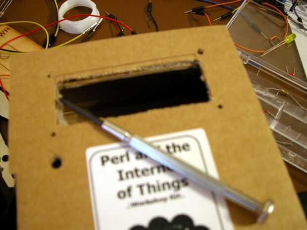 Empezar por echar un vistazo a su caja. Mina tenía triple espesor de tarjetas por un lado y doble en el otro. Por lo tanto, razonaba que coloco el puerto ethernet (que sería utilizado más a menudo) en el lado de doble espesor. Tengo podía cortar a través del triple espesor para facilitar el acceso al puerto serie, pero razonó que este prototipo sería suficiente como es.