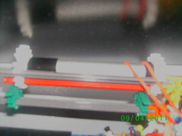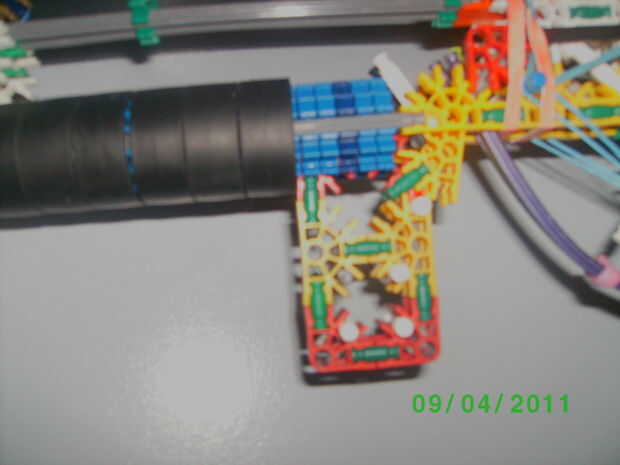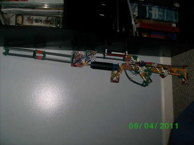 It is a though little K'nex gun that I made. Puede tirar una caña de K'nex blanco 8.5 pies (2,57 m). No es grande porque soy nuevo en instructables, pero merece la pena hacer y es bastante simple por lo que sólo toma unos muinets para construir. Perd