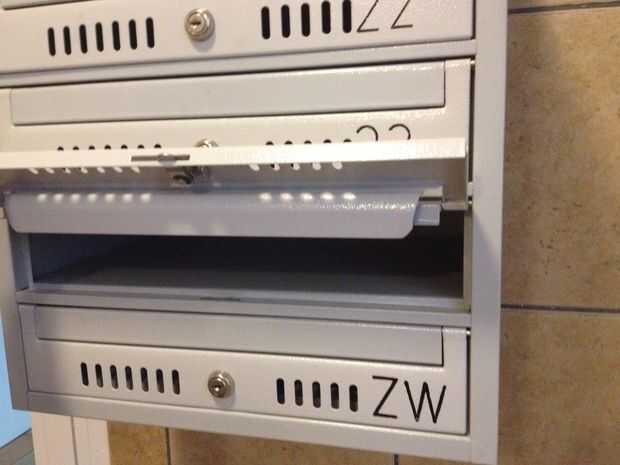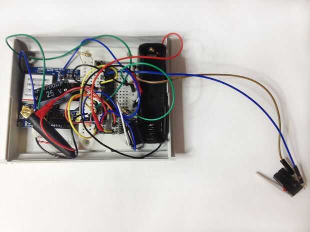 He instalado el dispositivo en el buzón utilizando una cinta eléctrica (sin perforación). El funcionamiento está basado en que para poder insertar el correo, el cartero necesita presionar un pestillo que entonces provoca una interrupción del microcontrolador mediante el interruptor de contacto. El seguro es un requisito Europeo para buzones de correo.