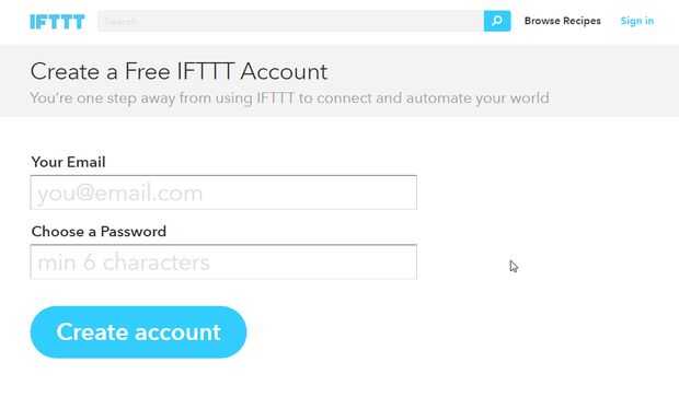 1. Si no tienes uno ya, crear una cuenta en www.IFTTT.com.