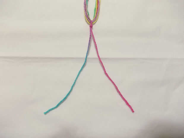 1. atar las hilos/cuerdas pequeño a largo hilo (ver foto). Asegúrese de que este pequeño hilo se dividen en 2 extremos, un extremo al pin caramelo y el otro extremo hacer el caramelo en lugar.