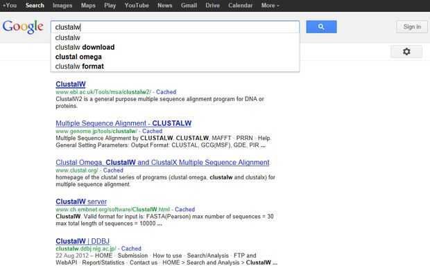 ClustalW es un programa de Bioinformática de uso general para el análisis de la secuencia de ácidos nucleicos y proteínas. Puede ser por cualquier motor de búsqueda en internet con la palabra clave "clustalw" eaily.