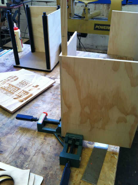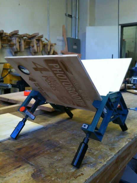 Pude encontrar útiles pinzas sujetar las piezas mientras se pega. Quise construir una estructura independiente de la estructura existente y agregado de bisagras para permitir el acceso a las piezas del sistema de photobooth.