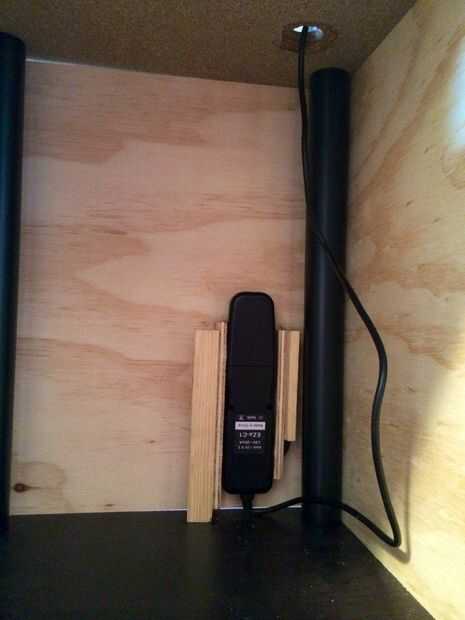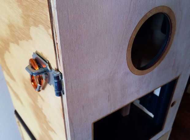 Construí un pequeño 'table' para la cámara para sentarse en el interior de la cabina a la altura exacta del círculo de apertura. Para el iPad, usé dos trozos de madera contrachapada para crear la puerta para que pudiera preparar un embutido para el iPad. Usar una pequeña pieza extra que se encuentra en la parte superior el iPad para mantener en su lugar mientras que abriendo y cerrando la puerta. Es una solución rápida y podría ser más elegante. Para proteger la puerta, me puse un sujetador rápido en el lado.