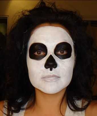 Pintura simple traje, blanca alrededor de la cara y negro alrededor de los ojos.