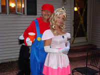 Cabello: peluca de Farrah Fawcett que utilicé el año pasado para mi traje de princesa Peach
