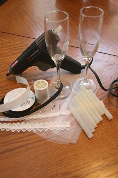 Dos diferentes piezas de encaje para el vidrio de la novia - la longitud que se necesita depende del cristal que usted elige, usted necesita solamente lo suficiente como para envolver y toque o se superponen ligeramente.