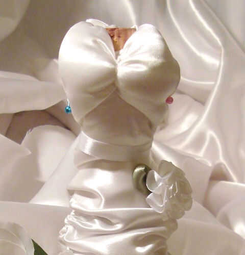 9. después de colocar el vestido sobre el frasco necesita la blusa con alfileres para determinar la forma de la forma. Tenía unos lazos en medio de la blusa del lazo después de que fuera de la botella para hacer la blusa se parecen más a una blusa. Esta parte toma varios intentos para hacerlo bien. No cosa nada más que la mitad de la blusa porque iba a volver a utilizar mi guante. I utilizar alfileres para sujetarla y sólo tenía la botella en un ángulo para que las agujas no se presentaron.