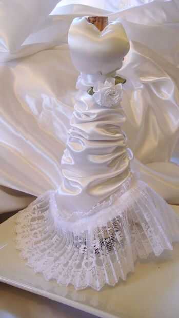 6. Coloque en la botella de vino o cerveza y coloque el tapón en la abertura de la botella de vino. Me deslicé el vestido sobre el cuello y a lo largo del lado de la botella deslizándolo hacia abajo para que no bateo sería en la apertura antes de poner el corcho en.