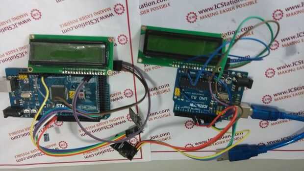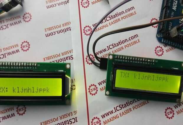 La placa principal de este sistema es UNO de ICStation y el ICStation Mega2560. Tanto de las juntas se conectan con la computadora y utilizan el NRF24L01 módulo inalámbrico para transmisión de datos. Cuando se emite la información, el panel de control principal utiliza el módulo Serial para recibir información de la computadora, mientras que uso de módulo sin hilos de la NRF2L401 a emitir la información a la computadora. Cuando se recibe información, el tablero de control principal emite la información que se transmite por el módulo inalámbrico NRF24L01 a ordenador a través del módulo Serial. Podemos utilizar este sistema para terminar la transmisión bidireccional entre ordenadores. Además, el proyecto está con un LCD1602 tableros que conectado con el tablero de control principal para mostrar los datos.