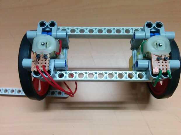 Creando un arnés para las ruedas y motores fue por lejos la más delicada, debido a la anchura variable del motor a lo largo de la altura. La proximidad de la parte giratoria de la rueda al chasis dio lugar a la fricción, pero superé por ajuste de la distancia entre ellos y rellenar los huecos con pegamento.