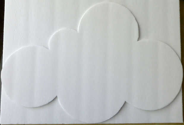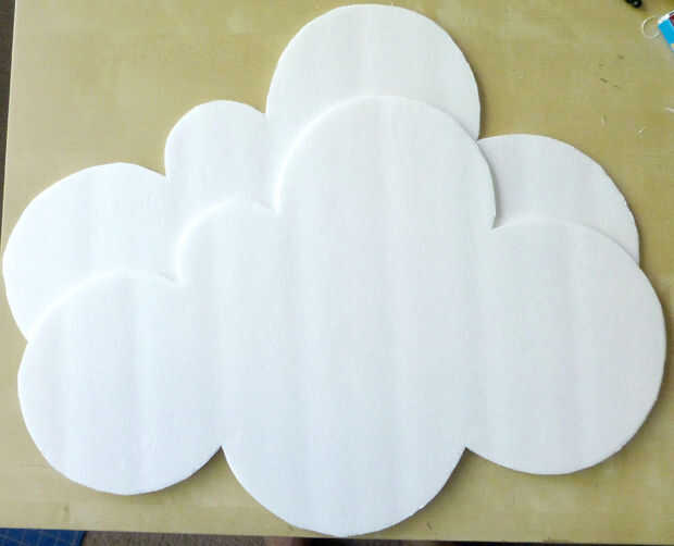 Usé un cuchillo para cortar la forma de la nube. Ya que necesitaba dos de estas formas de la nube para crear mi espejo, coloqué el primer corte a la nube en la parte restante si tablero, espuma lo trazado y corte la segunda. Afortunadamente, mi nube cabe dentro del ancho de la Junta de espuma, si haces una más grande en la nube te va a necesitar dos hojas de tablero.