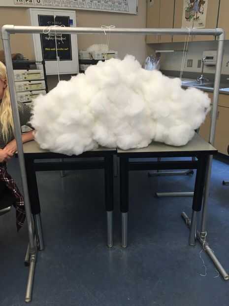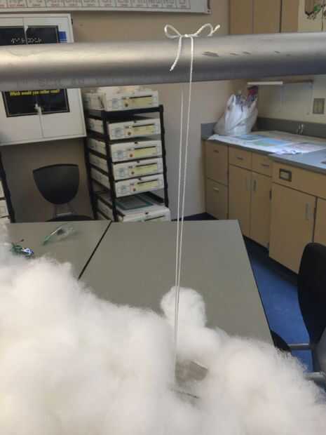 Con cuerda blanca, ajuste la nube a la estructura de PVC Atando nudos a través de la estructura metálica en cada linterna. Utilizamos un trozo de cuerda por cada farol, dependiendo del peso de la pieza que se quiere utilizar más. Opcional: seguro nudos usando pegamento caliente