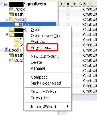 Paso 4: Suscribirse a "chats" en Thunderbird