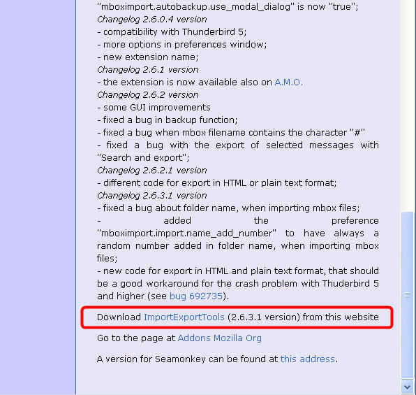 Paso 5: Herramientas exportación de instalar en Thunderbird