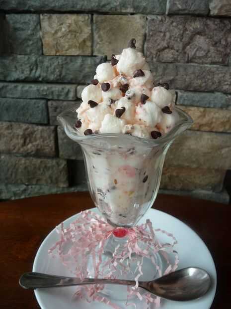 - Las nubes frías de la cuchara en un plato y espolvorear con las virutas de chocolate mini adicionales.