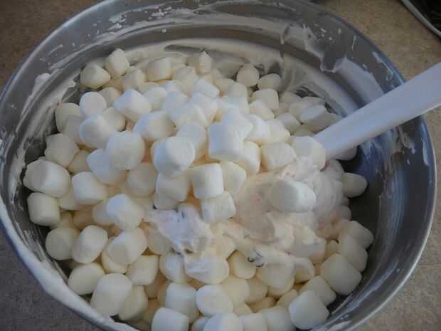Pequeñas cantidades a la vez, incorpore el malvavisco. Cubrir con papel plástico y refrigerar durante 3-4 horas o toda la noche.